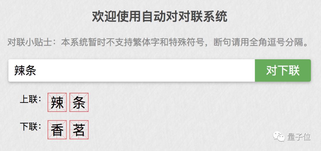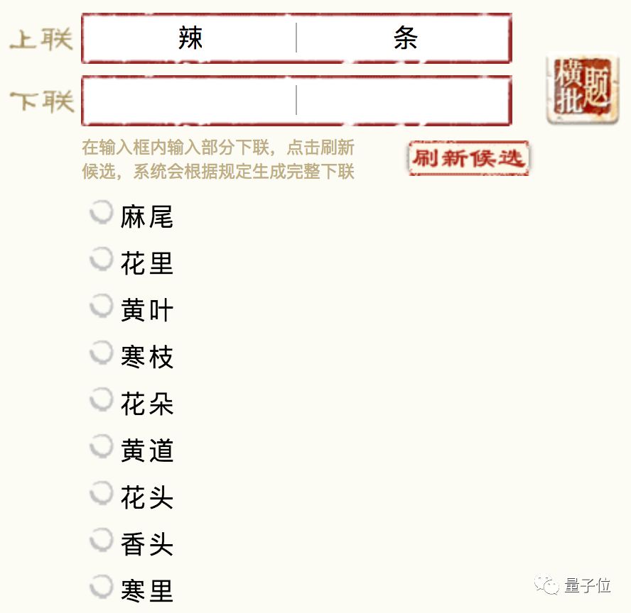 微软的对联AI要谨慎且复杂一点,即使你填“辣条”作为上联,它也会给你许多个下联。