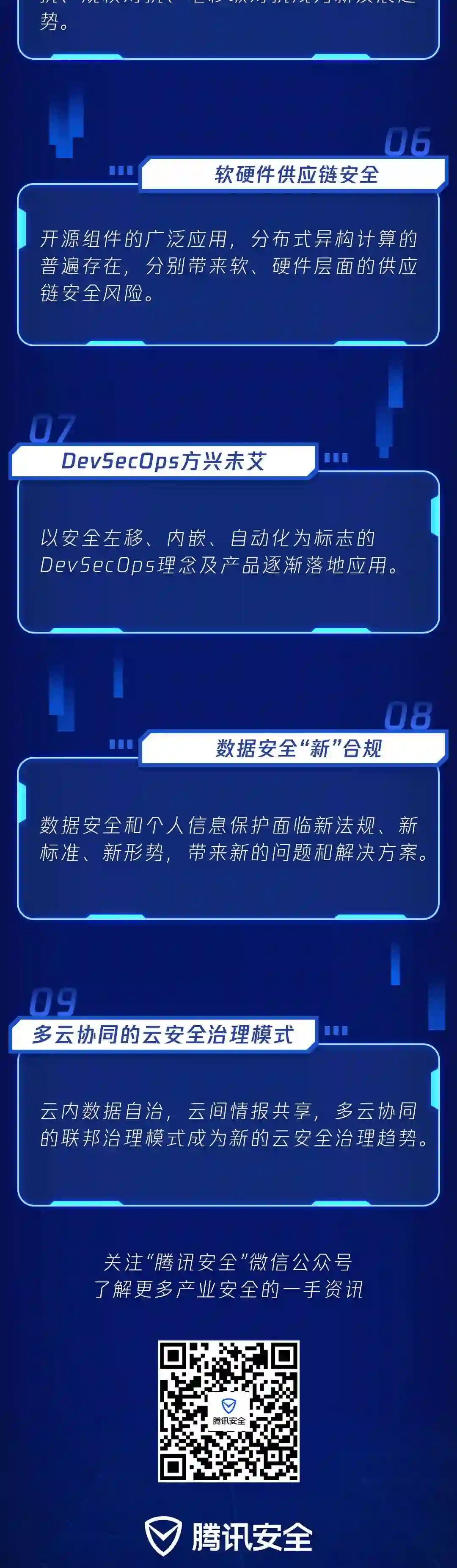 此前,腾讯云安全副总经理李滨基于腾讯云安全建设的实践和云鼎实验室的前沿研究,发布了《2021 云安全九大趋势》,致力于探索新基建快速发展之下,技术快速迭代、法律法规相继出台,云安全建设面临的全新挑战,为企业云上安全建设和云安全技术发展方向提供新指南。