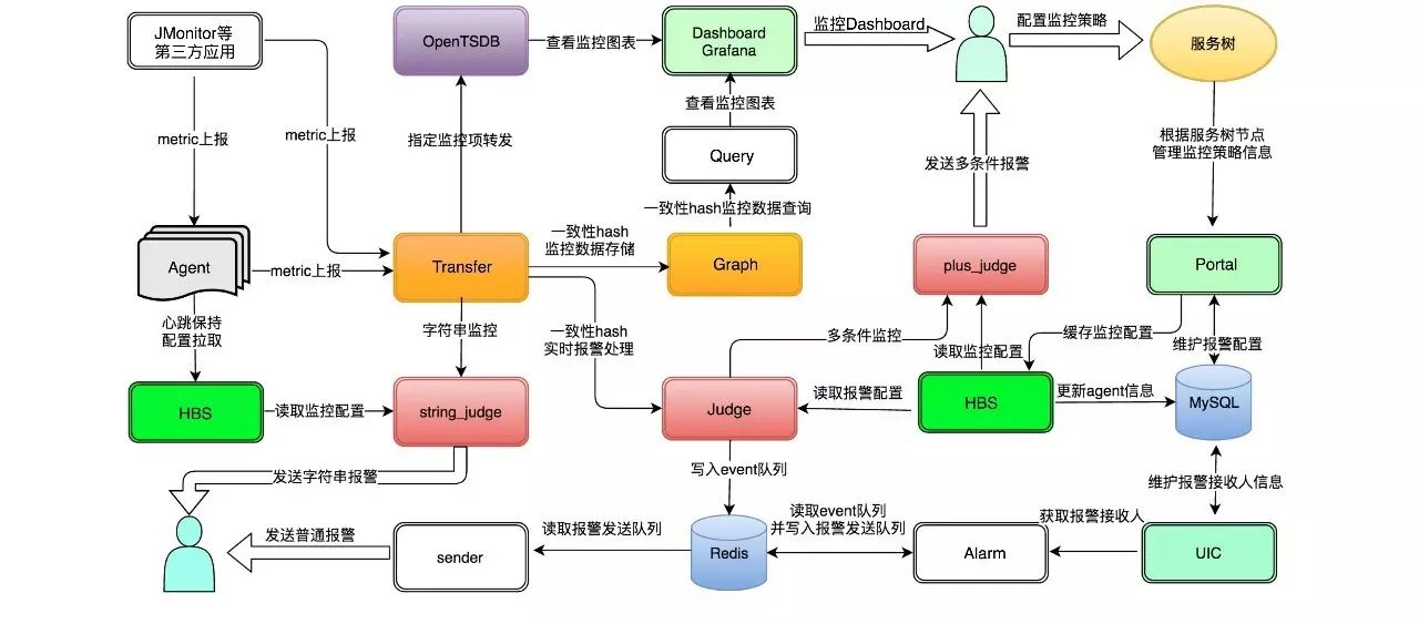 这个时候我们急于寻找一个替代的解决方案,经过筛选后,最终选择引进最初由小米开源的Open-Falcon监控系统(文档)。