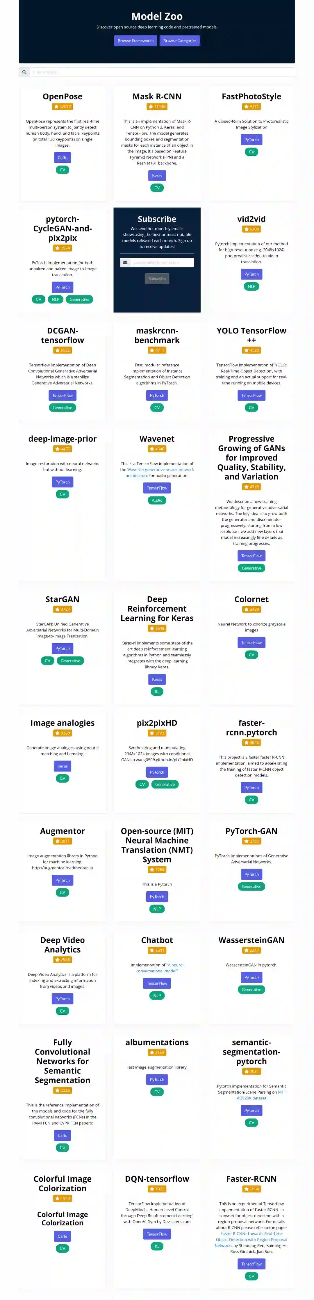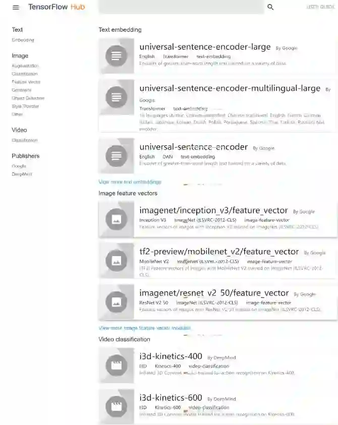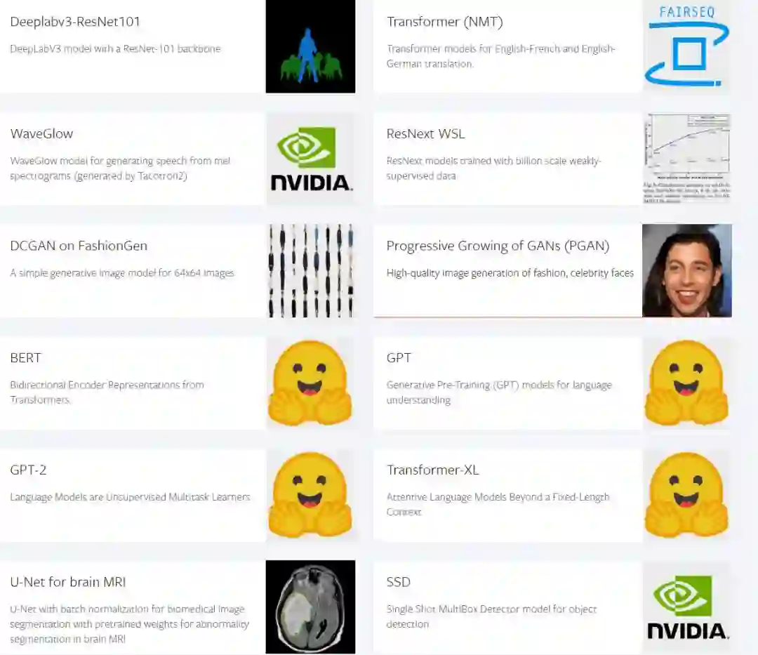 本文整理了Tensorflow、Pytorch等开源深度学习模型,可以非常方便供用户调用。比如Pytorch仅需一行代码(torch.hub.load())调用ResNet, ResNext, BERT, GPT, PGAN, Tacotron, DenseNet, MobileNet等最新模型。推荐给大家使用。