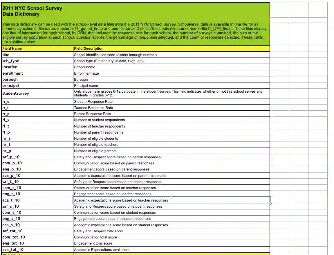 survey_fields = ["DBN", "rr_s", "rr_t", "rr_p", "N_s", "N_t", "N_p", "saf_p_11", "com_p_11", "eng_p_11", "aca_p_11", "saf_t_11", "com_t_11", "eng_t_10", "aca_t_11", "saf_s_11", "com_s_11", "eng_s_11", "aca_s_11", "saf_tot_11", "com_tot_11", "eng_tot_11", "aca_tot_11",]