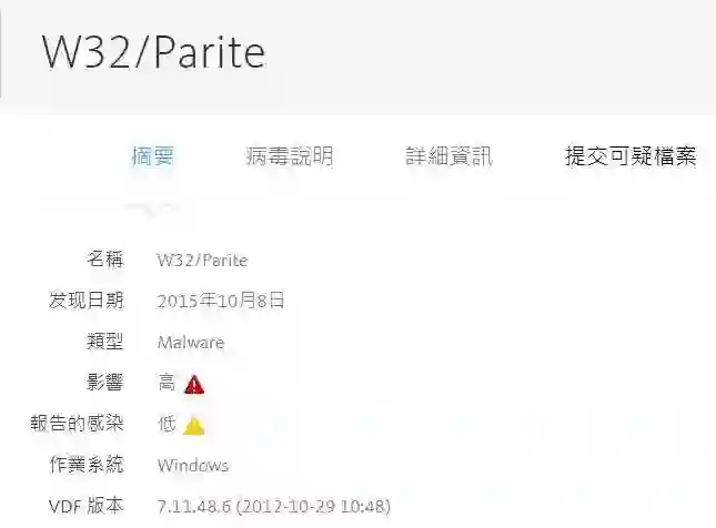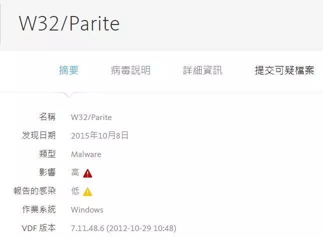 大东:咳咳,多读书多看报,少吃零食多睡觉。我这一手资料是来自小红伞 Avira Virus Lab 发布的 Parite 病毒报告。