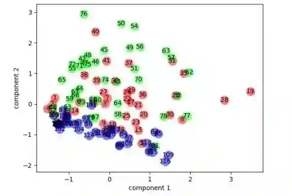 最终,我选择了词频变化最小的50个词作为特征,每个词的修正后标准方差都小于0.85。理论上,有了特征之后,我们就可以比较各个章节的相似性了。然而问题是,现在我们有50个特征,也就是说现在的数据空间是 50 维的,这对于想象四维空间都难的人类来说是很难可视化的。对于高维数据的可视化问题来说,PCA是一个很好用的数学工具。