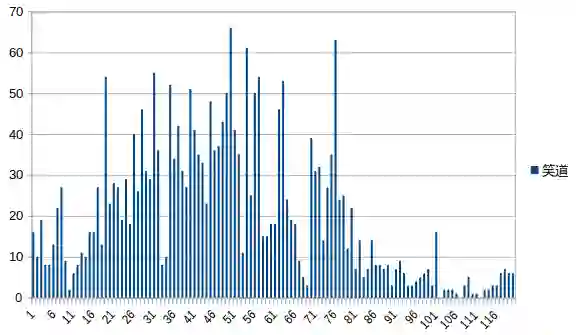 ∆ 图中横坐标是章回编号,纵坐标是“笑道”的词频