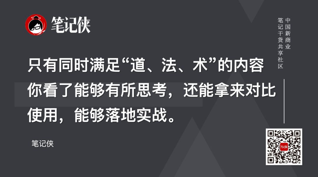他所交付的写作知识干货,同样满足笔记侠对于内容“道、法、术”的内容原则——