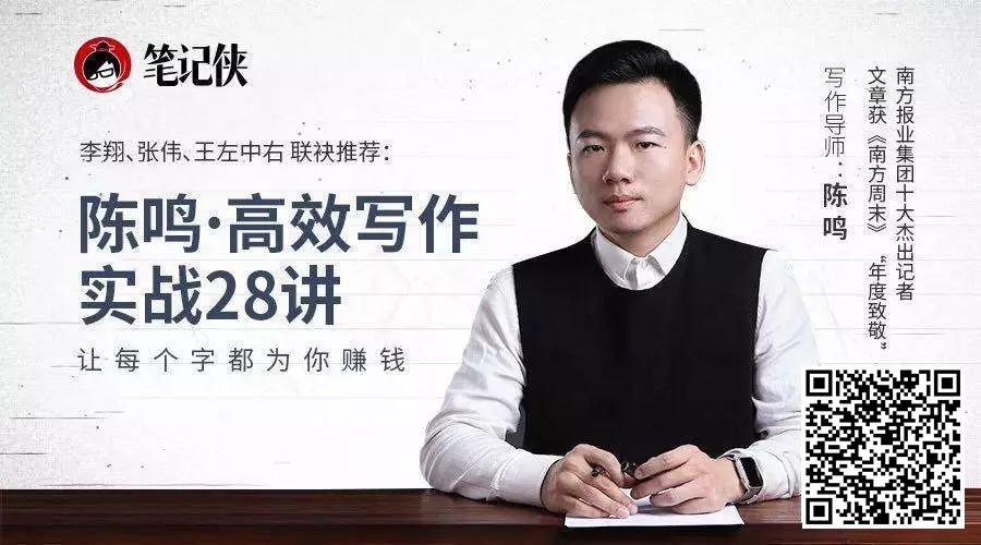 (关注笔记侠公众号,回复“写作课”三个字,可获得陈鸣写作课28讲知识卡片)