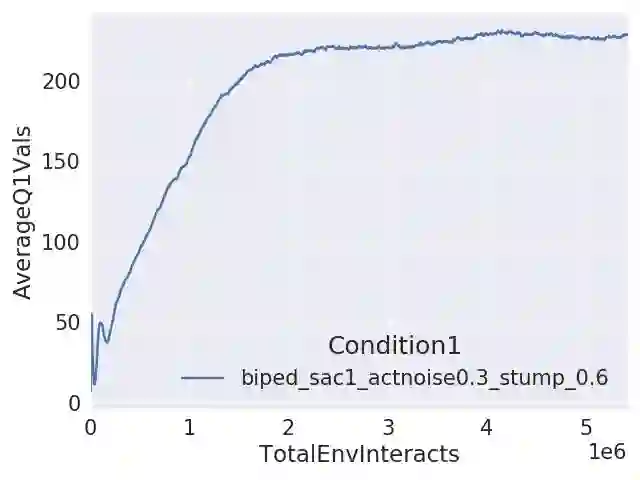 上面两种算法需要大量的环境交互,数据利用效率低。如果想把算法用在现实环境,提高数据利用效率是一个重要的研究方向。我们希望能高效地解决 'BipedalWalkerHardcore-v2'。