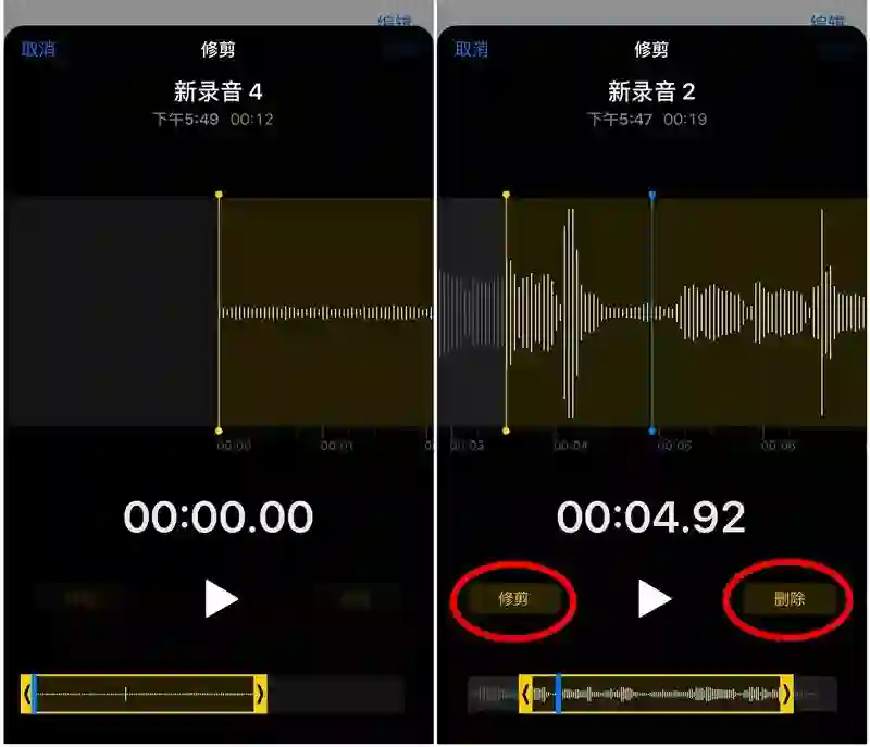 如果你需要对某个录音文件进行剪辑,在原生应用里也可以直接上“剪子”。