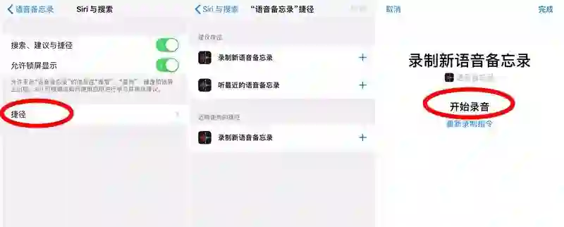 以后只要呼叫 Siri 并对它说“开始录音”,就会跳转至原生语音备忘录并开始录制声音。