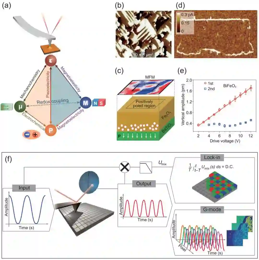 多铁性材料具有电序和磁序共存的特性,进而表现出磁电耦合行为,这为控制和理解与外界刺激相互作用的凝聚态结构提供了一个良好的平台,并有望为技术应用带来前所未有的机遇。在过去的二十年里,材料加工和薄膜沉积工艺的进步以及结构和性能表征方式的多样化推动了人们对于新现象的发现、新材料的发展和新器件的探索,而扫描探针显微镜的出现对于纳米尺度探测和操控多铁材料提供了一个强有力的工具。