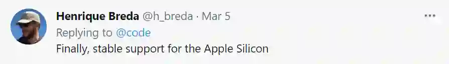 VS Code 对多种操作系统的支持一直是其优势,苹果 macOS 系统也不例外。2020 年 11 月,苹果发布了三款搭载自研芯片 M1 的 Mac。一个月后,微软就发布了原生支持苹果 M1 Mac 的 VS Code