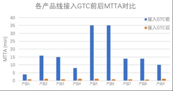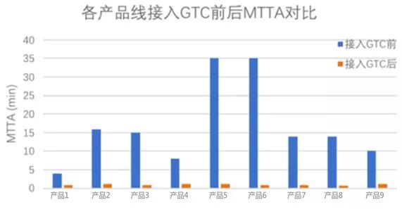 图 4. 各产品线接入 GTC 前后 MTTA 对比