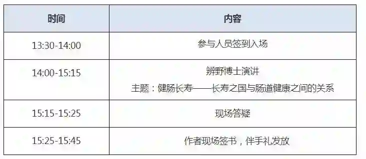 由人民邮电出版社图灵公司主办、中国食品科学技术学会益生菌分会提供学术支持的辨野义己博士健康讲座“健肠长寿——长寿之国与肠道健康之间的关系”将于12月5日,在北京日本文化中心举办。欢迎大家踊跃参加!限15人,报名并确认参加的读者,都会免费获得《大便通》一本和伴手礼一份。