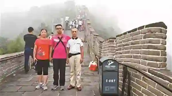 8月22日,唐德晋夫妇随儿子在北京游览长城。