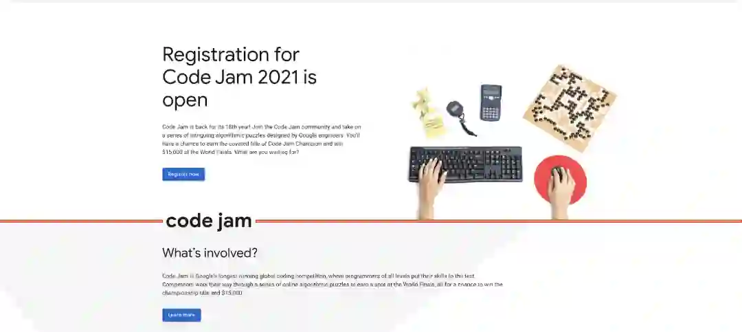 Code Jam 是谷歌举办时间最长的全球编程竞赛,不同级别的程序员和开发者都在这里进行技能测试。参赛者通过攻克一系列在线算法难题来赢得世界总决赛的一席之地,总决赛选手将有机会赢得冠军头衔和15,000 美元。
