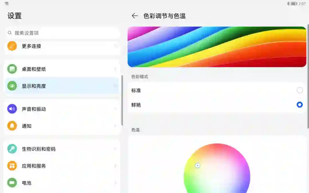 体验当中也发现平板的护眼模式是支持多档蓝光过滤的,显然是针对网课场景进行了优化,色彩调节中采用标准模式的话整体会有些发灰,推荐使用鲜艳模式,效果更佳。