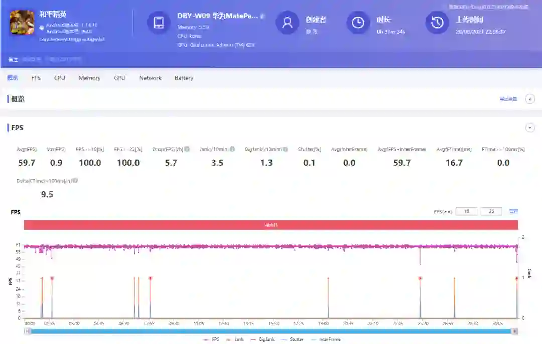 体验中,真正超出预期的是它的游戏表现,之前平板刚出的时候有用户反映游戏性能不佳,但上手的这段时间里,基本没遇到过这样的问题,应该是更新版本之后已经有了优化。实测《王者荣耀》极致画质 90 帧,30 分钟平均帧率 88.8 ,抛开中间结算和重开的帧率波动,整体的表现还是非常平稳的。《和平精英》在 HDR 高清,极限帧率模式下,30 分钟测试平均帧率 59.7 ,几乎全程跑满,波动很少。《原神》开启最高画质、60 帧,30 分钟平均帧率 42.8 ,全程基本在 40 到 50 之间,波动也不多。