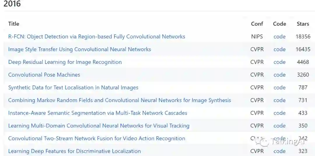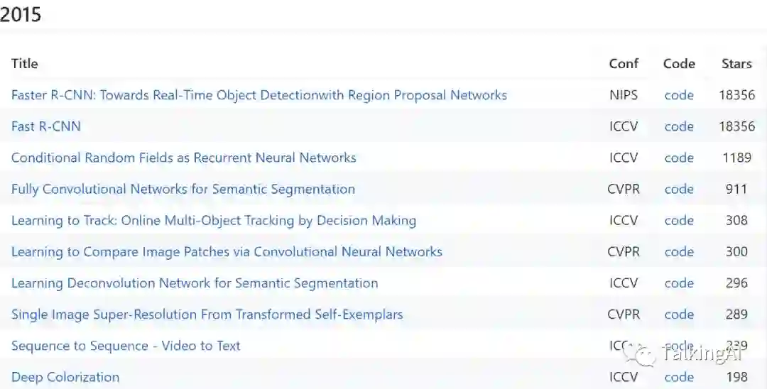 初略估计,目前整理论文数量(均有开源代码)为1535篇(这个数字好庞大,真的都要看吗😔),最高论文的stars高达46593. 不过有点欣慰的是,看到2017和2018的论文list还是很欣慰的,因为都还比较熟悉,比如Deep Image Prior,Non-Local Neural Networks,Single-Shot Refinement Neural Network for Object Detection,Focal Loss for Dense Object Detection, 最经典的Mask R-CNN,Densely Connected Convolutional Networks 等等~ 这些建议如果没有看过的同学们,一定要看哈~