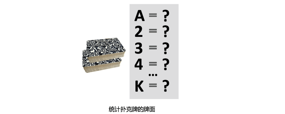 让我们回到数扑克牌这个例子中,大数据时代的扑克牌问题是什么样子的?