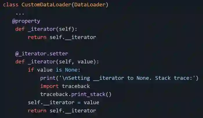 为了证实这一发现,我用一个自定义的只能重载的__iter__方法替换了 DataLoader: