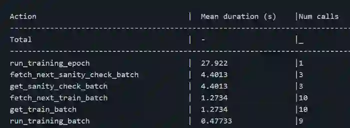 Lightning 的 profiler 与上下文管理器一起运行并计算给定块花费的时间。它可以轻松搜索特定的 profiler 操作,以运行「run_training_epoch」为例 。