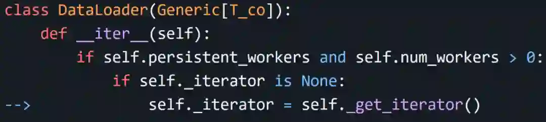 问题看起来确实来自在每个 epoch 中重新加载 DataLoader。查看 DataLoader 的源码,发现是这样的: