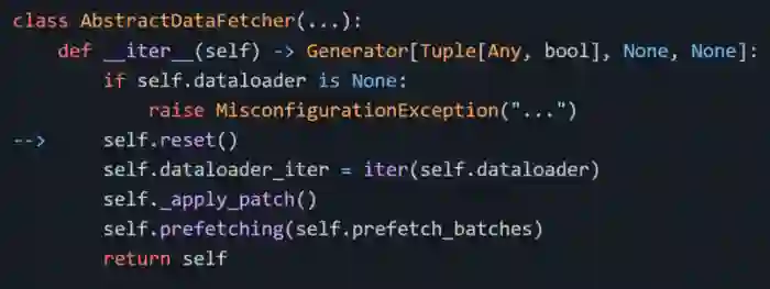 通过跟踪发现每次开始运行时都会调用 DataLoader.reset。通过深入研究代码后,我发现每次迭代都会重置 DataFetcher,从而导致 DataLoader 也被重置。代码中没有条件来避免重置:每个 epoch 都必须重置 DataLoader。