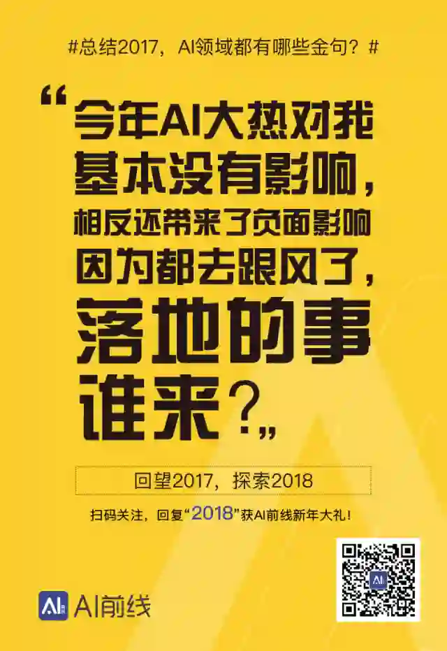 2018会不会对你好一点儿我们不知道,但是只有你自己的努力可以让你的生活更加美好!希望在你成长的道路上,AI前线能够一直陪伴!