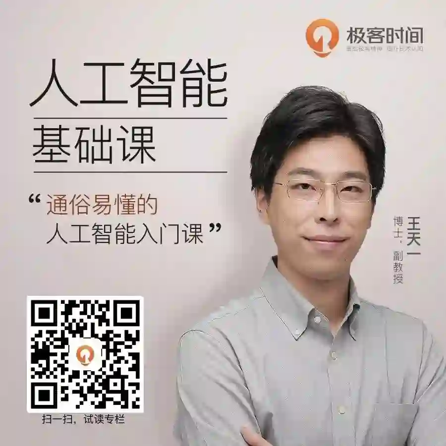 王天一教授在极客时间App开设的“人工智能基础课”专栏阅码(全年!共40期内容!)