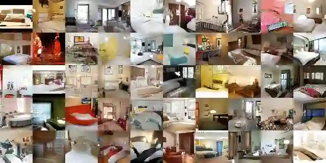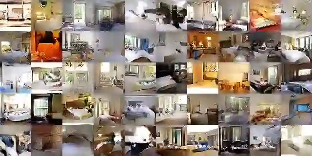 下图展示的是经过一个阶段的训练生成的卧室图像。据作者介绍,从理论上讲,这个模型可以学会记住训练样本,但鉴于他们当时在训练时使用了很小的学习率(learning rate)和小批量的随机梯度下降(SGD),这实际上是不太可能的。
