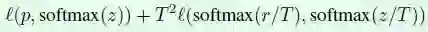 其中p表示真实标签,z表示student model的全连接层输出,r表示teacher model的全连接层输出,T是超参数,用来平滑softmax函数的输出。