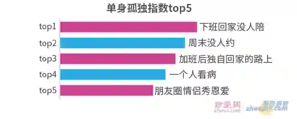 孤独是个人都存在的,在单身人士这尤其明显:“下班回家没人陪”成为击中所有单身狗的利剑,孤独指数满分;玩游戏、追剧成为了广大单身狗排遣孤单的首选;“一个人看病”和“朋友圈情侣秀恩爱”。可见,单身人士还能活着是多么不容易。