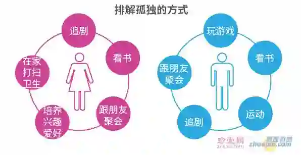 面对孤独感,玩游戏、看书、运动、追剧和跟朋友聚会成单身男性排解孤独的主要方式;而单身职场女性排解孤独主要方式则是:追剧、看书、跟朋友聚会、培养兴趣爱好和在家打扫卫生。