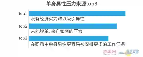 报告显示,单身男性的压力主要来源于没有经济实力难以吸引异性,其次是来自家庭的压力,单身男性更容易被安排更多的工作任务。