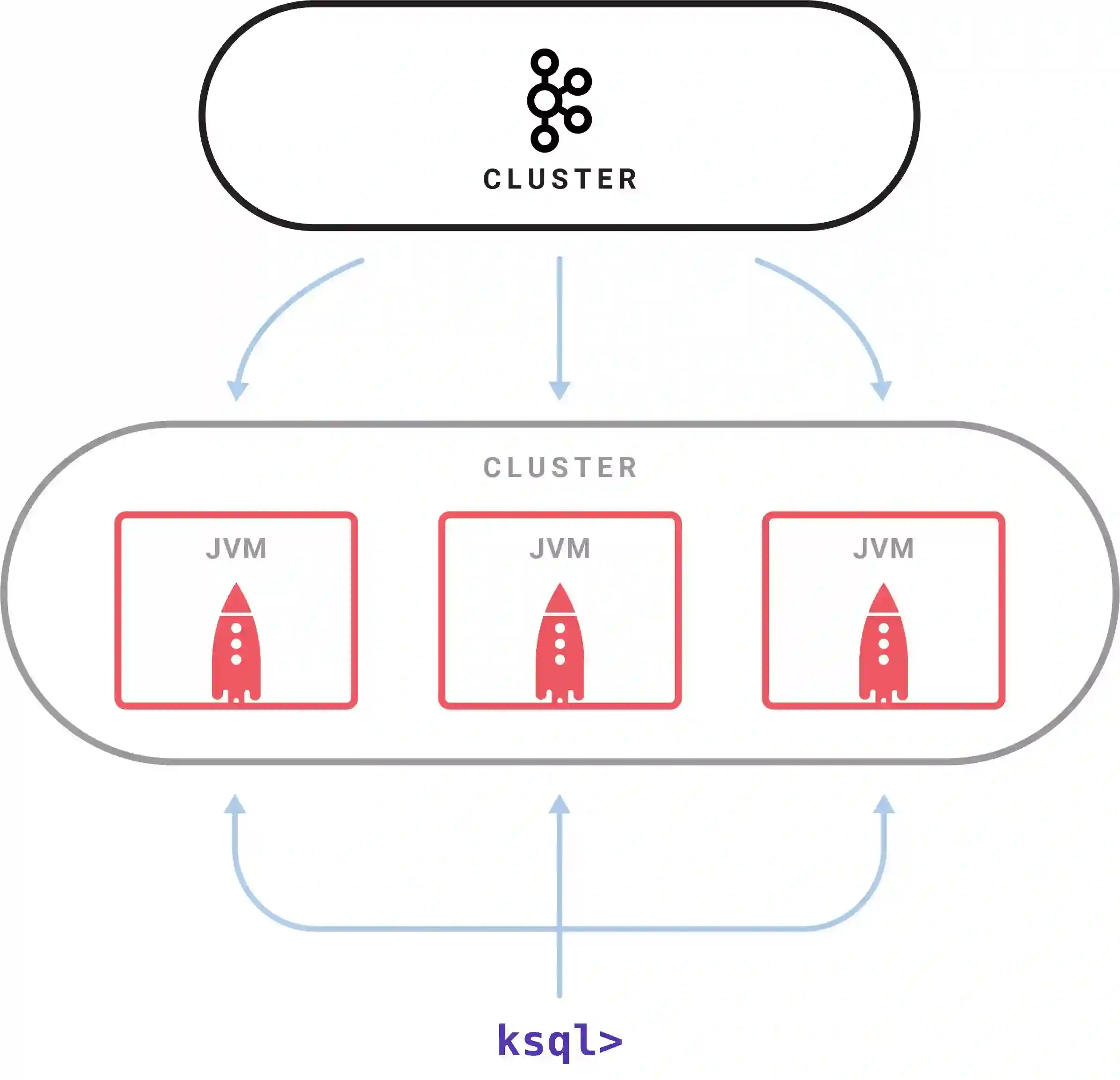 有一个KSQL服务器进程执行查询。一组KSQL进程作为集群运行。您可以通过启动更多的KSQL server实例来动态添加更多的处理能力。这些实例是容错的:如果一个失败了,其他的就会接管它的工作。查询是使用交互式的KSQL命令行客户端启动的,该客户端通过REST API向集群发送命令。命令行允许检查可用的流和表,发出新的查询,检查状态并终止正在运行的查询。KSQL内部是使用Kafka的流API构建的;它继承了它的弹性可伸缩性、先进的状态管理和容错功能,并支持Kafka最近引入的一次性处理语义。KSQL服务器将此嵌入到一个分布式SQL引擎中(包括一些用于查询性能的自动字节代码生成)和一个用于查询和控制的REST API。