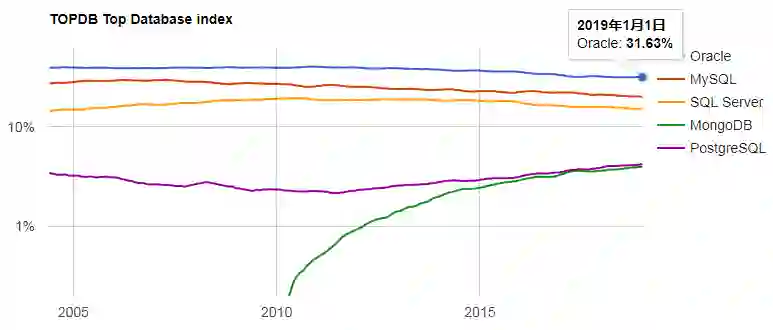 排名前五的分别是:Oracle、MySQL、SQL Server、PostgreSQL 和 MongoDB。
