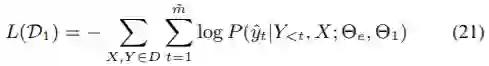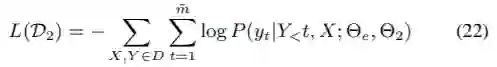 模型训练:模型以端到端的方式进行优化。 我们使用D表示训练数据集,并使用Θe,Θ1和Θ2分别表示编码器、第一步解码器和第二步解码器的参数。第一步解码的训练是为了最大程度地减少以下损失: