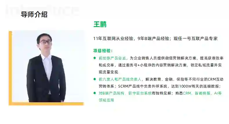 这是由起点课堂(原起点学院)出品的B端产品公开课,专为正在做B端产品同学,或者对B端产品感兴趣想要了解相关工作内容的同学打造,课程将由现任一号互联产品专家@王鹏老师直播授课。