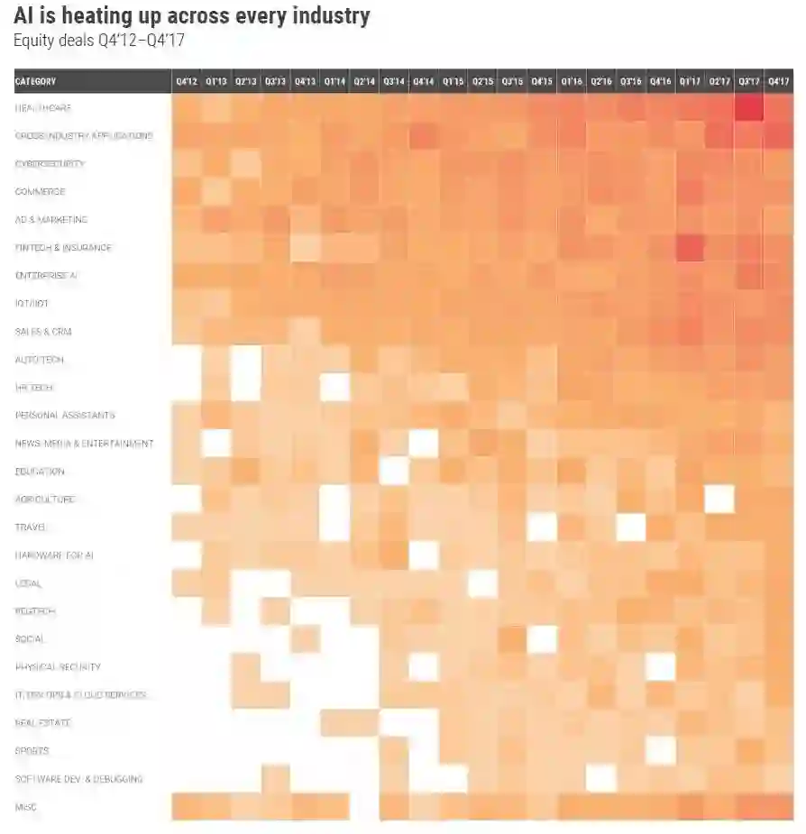 CB Insights指出,2018年,人工智能无处不在,或者更确切地说,机器学习将无处不在。这项技术几乎“无所不能”,并将在2018年创造出无限可能。