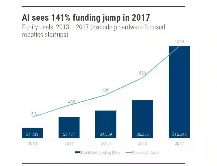 美国知名研究机构CB Insights近日发布重磅报告《2018年必看的人工智能热门趋势》(Top AI Trends To Watch In 2018),报告对AI行业发展现状进行了深入研究剖析,并给出了2018年AI领域最值得关注的13个前沿发展趋势。