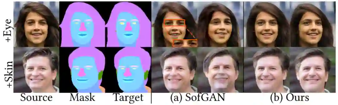 图 10 真实图像风格迁移的例子。可以看到 SofGAN 有一定的瑕疵,而且在身份上有一定变化。
