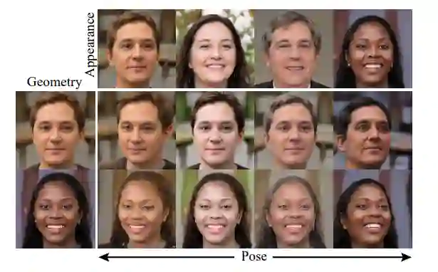 近些年,随着神经辐射场 [1] 与对抗式生成网络 [2] 的结合,各种高质量、快速渲染的三维人脸生成网络被提出,其中包括 EG3D [3]。