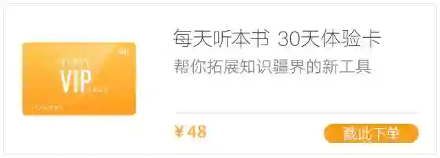 为你推荐“每天听本书”30天体验卡,只需30分钟的时间,就能吸收一本书的精华。
