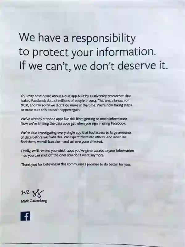 美国的情况在恶化。自从特朗普出人意料地当选美利坚合众国第45任总统,有关俄罗斯黑客干扰美国大选的消息就连绵不绝,受雇于共和党的数字营销公司通过大数据分析,真对不同的人群的心理和价值取向特征,精准推送不同类型竞选广告的案例被曝光;这让人们除了对科技公司的安全产生怀疑之外,更多了一种被数据奴役了思维的耻辱感和不安感。Facebook也成了众矢之的,秉持“技术中立”导致大量流言和假新闻被推送;最近被彻底暴露的大事件是英国数据营销公司Cambridge Analytics通过Facebook的数据接口窃取了大量用户数据,专门用于以支持特朗普当选为目的的广告和内容分发。这件事让Facebook名誉扫地,扎克伯格不得不在欧美几大主流报刊上登报道歉。而且看上去,人们对Facebook的信任感,短期内很难修复。