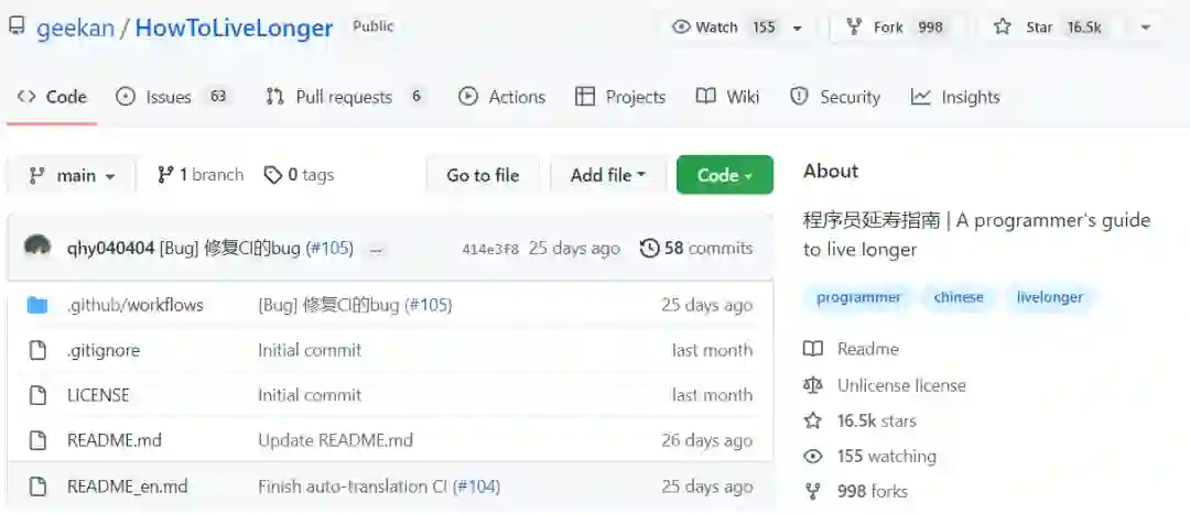 除了这集 podcast,也必须附上吴承霖大佬的万星项目程序员延寿指南。