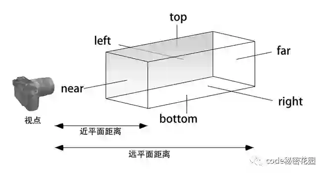 OrthographicCamera接收六个参数, left,right,top,bottom分别对应上、下、左、右、远、近的一个距离,超过这些距离的元素将不会出现在视野范围内,也不会被浏览器绘制。实际上,这六个距离就构成了一个立方体,所以 OrthographicCamera的可视范围永远在这个立方体内。