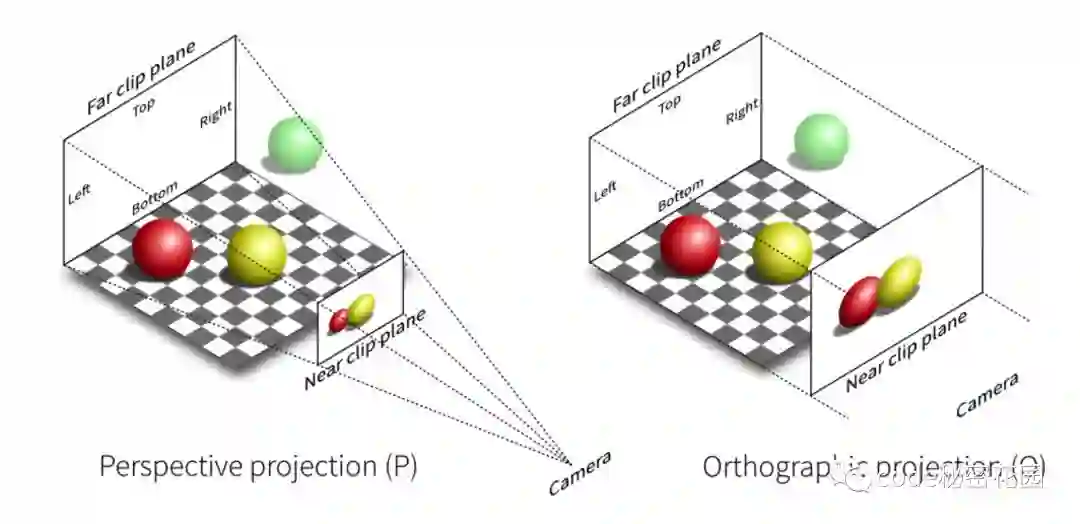 目前 Three.js提供了几种不同的相机,最常用的,也是下面插件中使用的两种相机是: PerspectiveCamera(透视相机)、 OrthographicCamera(正交投影相机)。