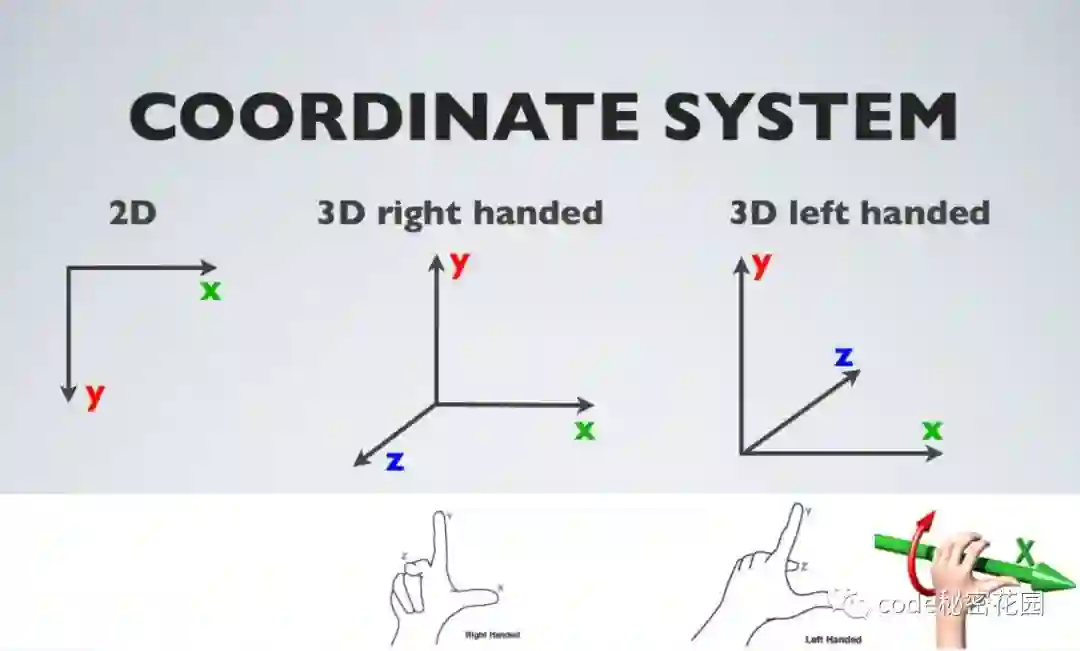 这就产生了两种坐标系:左手坐标系和右手坐标系。