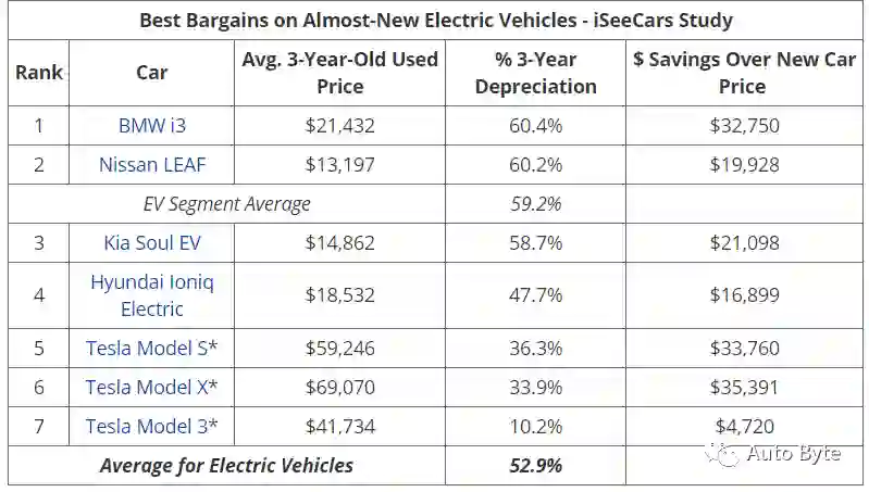 但一个值得注意的地方是,美国汽车搜索引擎iSeeCars在早些时候分析超过690万辆二手电动汽车的销售情况时,还曾发现一个现象:特斯拉Model 3、Model X、Model S残值分别达到89.8%、66.1%、63.7%,明显超过同期其它的纯电动车型。