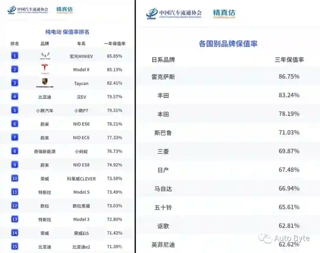 中国汽车流通协会和精真估联合发布的《2021年度中国汽车保值率报告》显示,